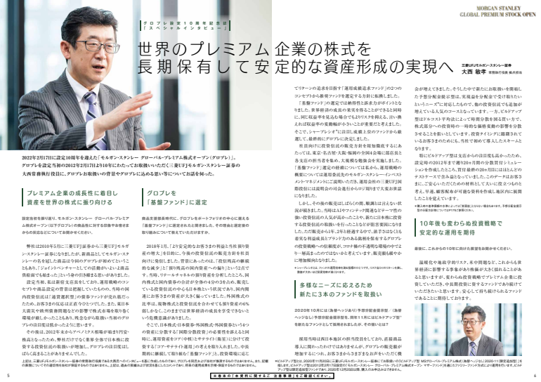 「モルガン・スタンレー グローバル・プレミアム株式オープン」設定10周年記念資料 2022年3月発行